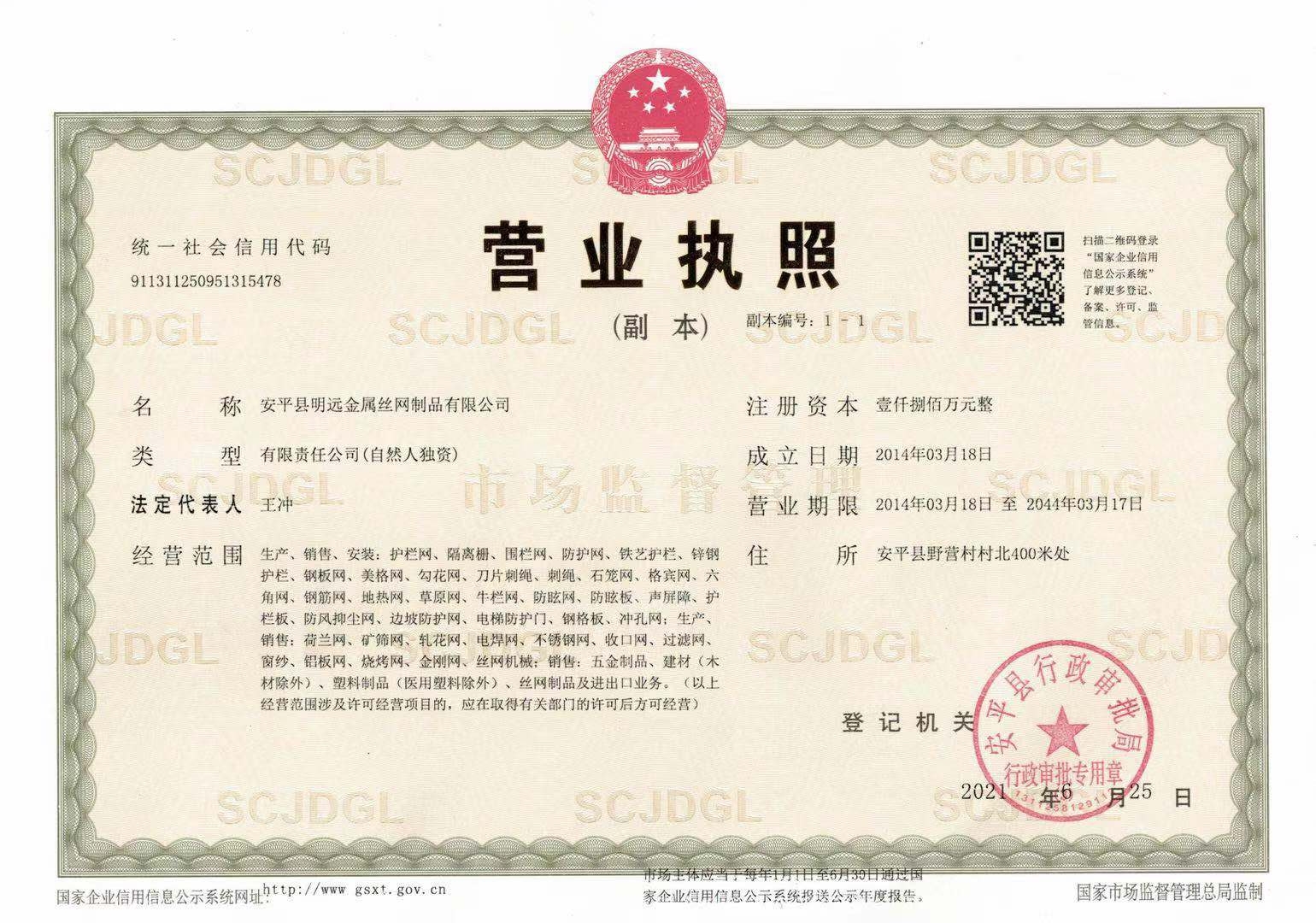 安平縣明遠金屬絲網制品有限公司 -  座落于絲網產業基地河北安平,二十年絲網制作經驗,是一家從拔絲、焊接、打砂、折彎、鍍鋅、噴塑、浸塑、為成品,生產研發安裝為一體的交通工程護欄網、光伏景區圍欄網專業型企業。明遠公司擁有先進的生產設備,全自動浸塑、噴塑、鍍鋅生產線,電腦焊網機組,聯合壓力機,數控折彎機,槍尖沖孔機等多臺輔助設備,具有大批量生產能力。